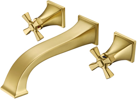 Quick Shop SITGES Wall-Mount Tub Faucet,Brushed Gold High-Flow Tub Filler,Dual Cross Handles,10-Inch Square Spout with Engineered Curves,Solid Brass,Rough-In Valve Included – KOTTISAARI $229.99