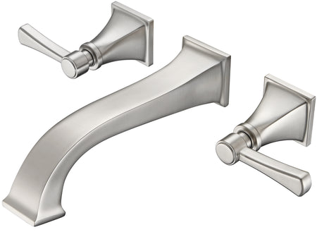 Quick Shop SITGES Wall Mount Tub Faucet,Brushed Nickel High-Flow 2-Handle Tub Filler,10-Inch Square Spout with Engineered Curves, Solid Brass, Rough-In Valve Included,KOTTISAARI $219.99