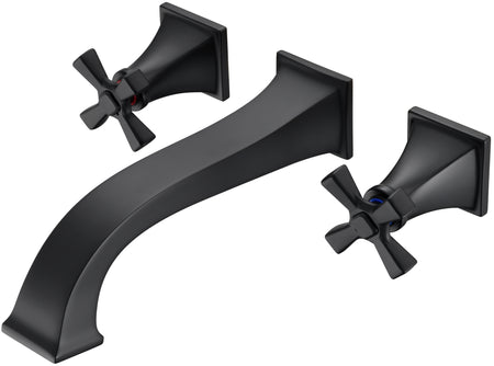 Quick Shop SITGES Wall-Mount Tub Faucet,Matte Black High-Flow Tub Filler,Dual Cross Handles,10-Inch Square Spout with Engineered Curves,Solid Brass,Rough-In Valve Included – KOTTISAARI $189.99