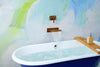 - HIGH VOLUME WATERFALL TUB SPOUT: 9.4" Large tub Spout cascades water into bathtub without splashing, provides an in-home Spa experience that alleviates stress and keeps you in a relaxing mood. High Flow Rate 8GPM@ 80psi fills 59" tub in 7 mins/67" tub in 10 mins. While the wider Spout could also work as a shelf/holder to place iPad, Aromatherapy Candles, Wine Glass and Soap Dish, etc.